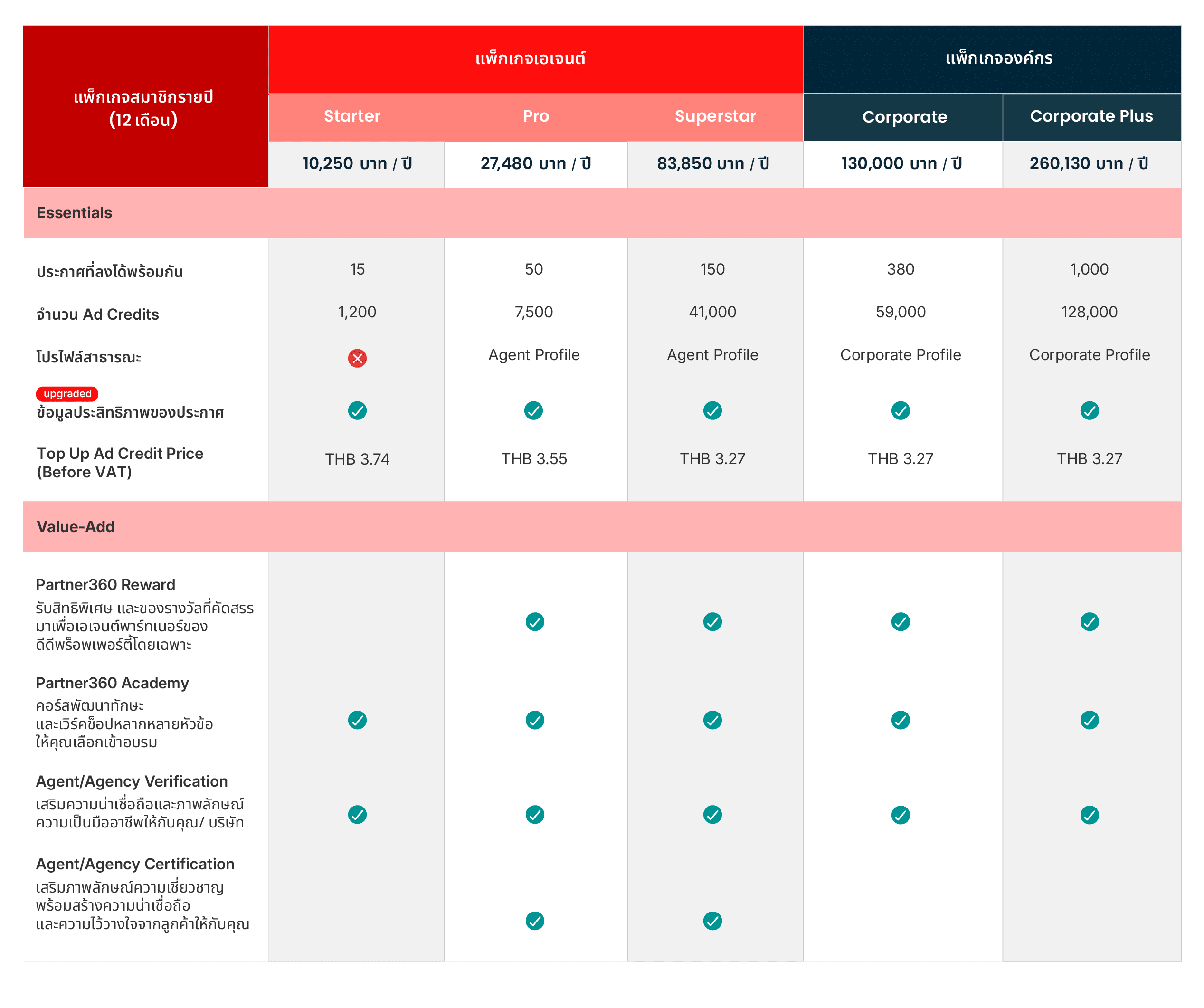 - เพิ่มโอกาสการขาย: เรามีการปรับเพิ่มจำนวนประกาศ และ Ad Credits ในทุกแพ็กเกจ เพื่อให้ท่านลงประกาศ และบริหารจัดการประกาศได้อย่างต่อเนื่อง