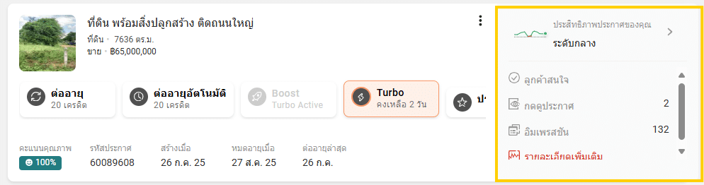 Refer to the sparkline on the right of each listing to know the number of times your listing appears to property seekers in their search results and how it performs in comparison to other similar listings based on the past 30 days’ impression.
