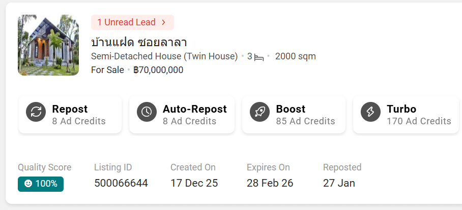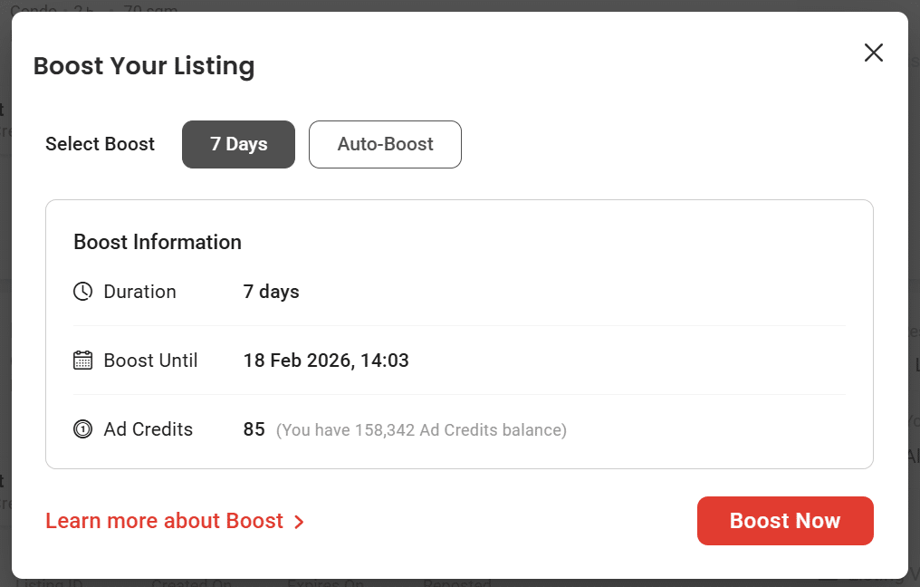 NOTE: You will always be shown the amount of Ad Credits that will be deducted before you Boost a listing.
