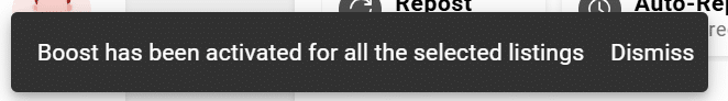 A progress bar will be displayed to track the completion of your multiple Boost booking. Upon successful activation, you will see a confirmation message at the bottom left of your listing management page.